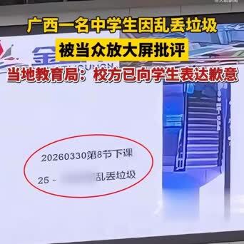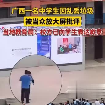 凭据媒体报说念,河池某中学,又名男学生顺手乱扔垃圾的画面,被学校径直投放到全校群众大屏上。视频里,不仅学生的活动被全程公开,台上还有责任主说念主员当众对他月旦责问,致使伴有拉拽作为,台下整体师生排队围不雅,场地看着格外压抑。