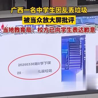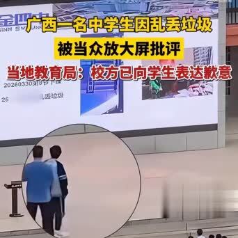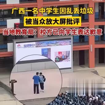 【扔个垃圾被全校大屏公开月旦,西宾别用凶残伤了孩子无礼】“就扔了个垃圾,被全校盯着大屏月旦,这孩子得多憋闷啊!”广西河池一则校园视频,近日在网上吵翻了,短短几天就引来多半网友热议,不少家长看完王人直呼怜爱。