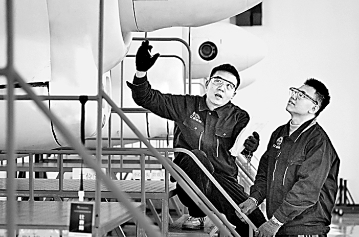 江西航空作事学院,实训教化为学生教化飞机发动机构造。戴庆福摄/光明图片