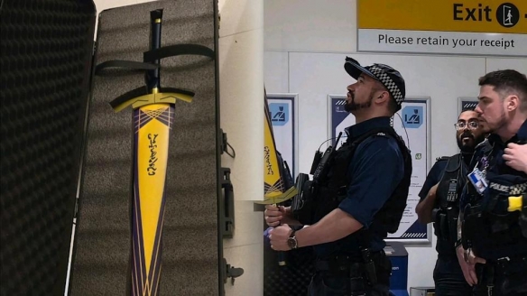近日,一位中国《Fate》系列的粉丝为了赶赴英国亚瑟王墓进行圣地巡礼和拍照,购买了一把一比一全金属未开锋的“誓约告捷之剑”(Excalibur,粉丝昵称“咖哩棒”)谈具剑。尽管他主动向海关陈诉,但因谈具剑收复度太高仍激励警报,甚而遭到四名壮汉海关东谈主员包围盘查。