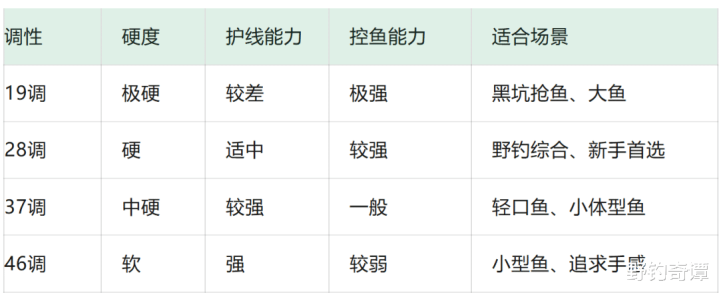 所谓调性,说白了即是鱼竿受力时从那儿运行蜿蜒。数字越小越硬:19调基本只在竿尖弯,28调在竿身前四分之一处弯,37调在三分之一处弯,46调就软得弯到中间去了。传统钓长竿,小飞哥浓烈保举选28调。