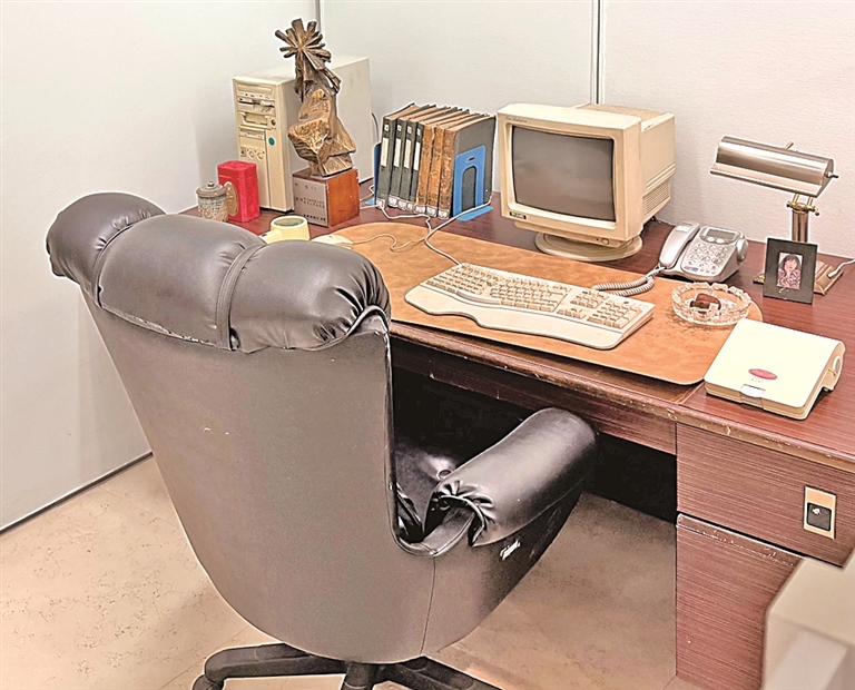 一把魁岸的玄色皮质可升降转椅,书桌上摆放着电脑、键盘、座机、台灯……体裁馆支握有瞻念看部策展东说念主王磊细数柏杨书斋里一件件充满现代生起火味的展品,柏杨先生晚年等于在这把椅子、这台电脑上,创作了巨额的作品。“咱们专诚在展区吊挂了两张柏杨先生的相片,一张是凝念念念念索的特写,一张是他怀抱猫咪的祥和一霎,以此展现他理性与理性兼具的丰富内心世界。”王磊说。
