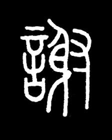 罗振玉在《增订殷墟书契考释》卷中说:“卜辞诸谢字从言、从两手抓席。或省言,或省两手。”“知两手抓席为谢者,《祭义》:‘七十杖于朝,君问则席。’注:‘为之布席堂上,而与之言。’正义:‘布席,令坐也。’此从两手抓席者,盖臣于君前,不敢当坐礼,故抓席以谢也。”即老臣双手抓席,婉辞君主赐坐之礼。故谢为辞。篆文由会意字变为形声字。从言,射声,是战国才有的后起字。