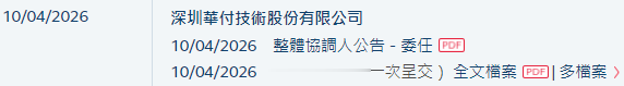 2026年4月10日,来自广东深圳南山区的深圳华付期间股份有限公司ShenzhenHuafuTechnologyCo.,Ltd.(简称"华付期间”)在港交所递交招股书,拟在香港主板挂牌上市。这是继其于2025年9月30日递表失效后的再一次恳求。