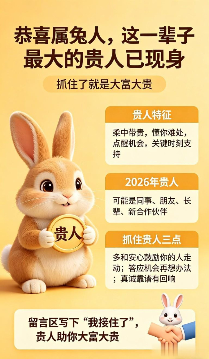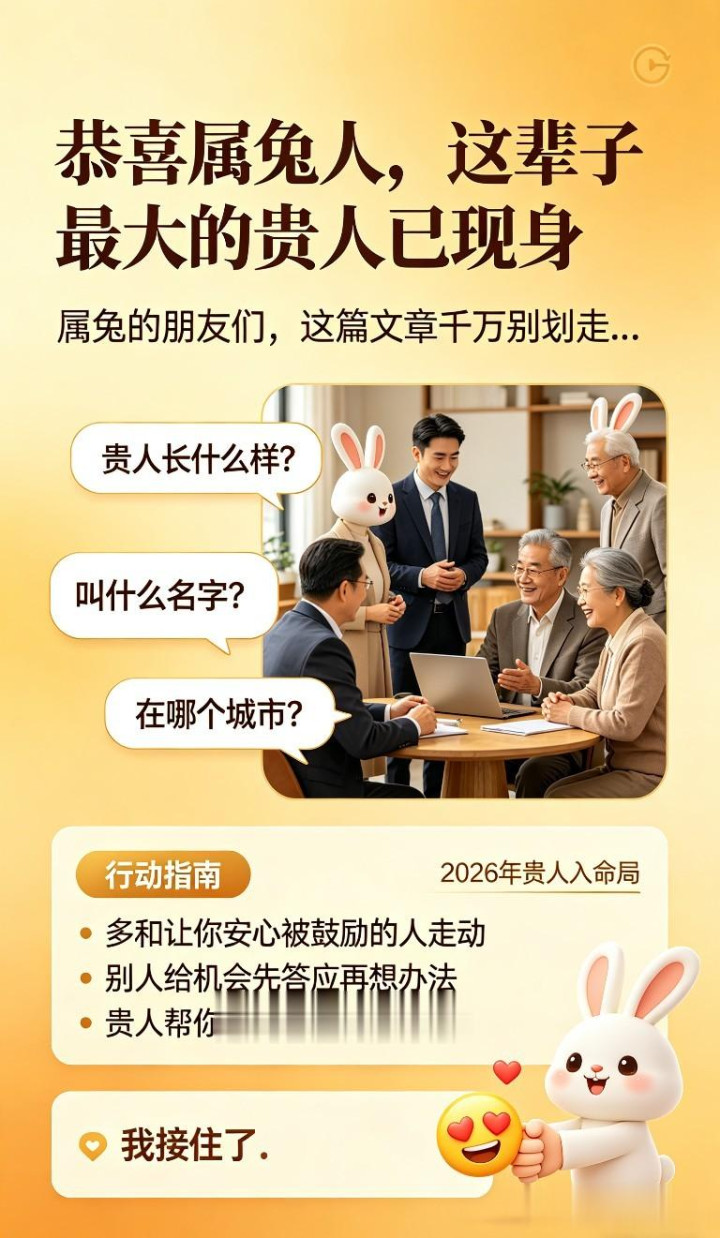 这些东谈主,不是刚巧。他们即是你命里的贵东谈主。而2026年,属兔东谈主最大的那位贵东谈主,也曾现身了。