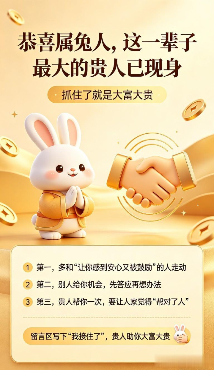 别急,我先告诉你一个真相:属兔的东谈主,天生不缺贵东谈主,缺的是“认出贵东谈主的本领”。