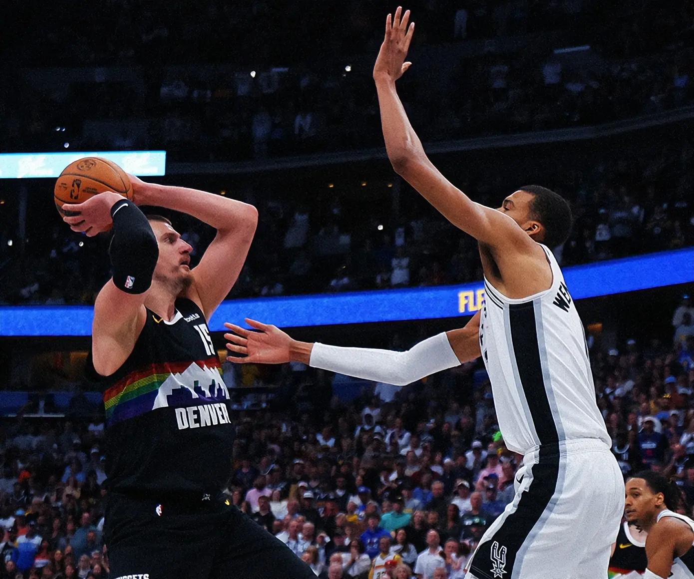 比赛上来,两队拉满攻防,马刺队三分线外箭如雨下,约基奇以点带面周转全队,掘金队首节36-43落伍7分。第二节,马刺队轰出一波8-0将分差拉大到两位数,瓦兰和约基奇制霸内线,掘金队审定将分差松开到个位数。随后,两队堕入苦战,马刺队耐久手捏10分凹凸越过优势,这种形势继续到小节中段,掘金队转眼发力轰出一波11-2的攻势追上比分。要道时间,戈登暴扣抹均分差,将比赛拖进加时。加时赛里,两队连接拉锯战,约基奇要道时间射中抛投,文班亚马憾失绝杀三分球。最终,米兰体育马刺队以134-136惜败掘金队。
